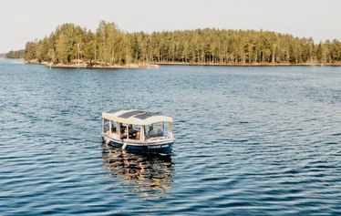 Experience the most beautiful scenery of Lake Saimaa in the Puumala archipelago. A cruise on the electric-powered Ekopaatti is a unique experience and pure enjoyment. On this quiet boat, you can experience the waterways and nature up close with all your senses, without the roar of an engine. Sitting on comfortable leather sofas almost at water level, you can hear the lapping of the waves and the sounds of nature. The large windows offer magnificent views in every direction, and you can smell the fresh scent of the lake and forest. The cabin of the boat is like a living room on the waves. With a little luck, you may even see the rare Saimaa ringed seal.