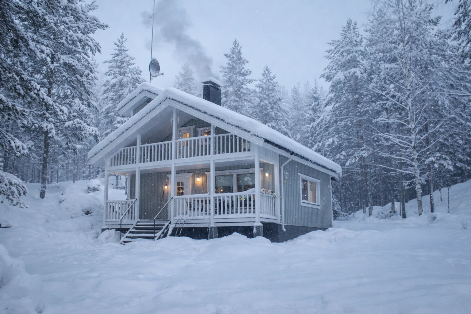 Also downstairs there is a wood-fired sauna (Iki-heater), washroom, dressing room and 2 toilets.