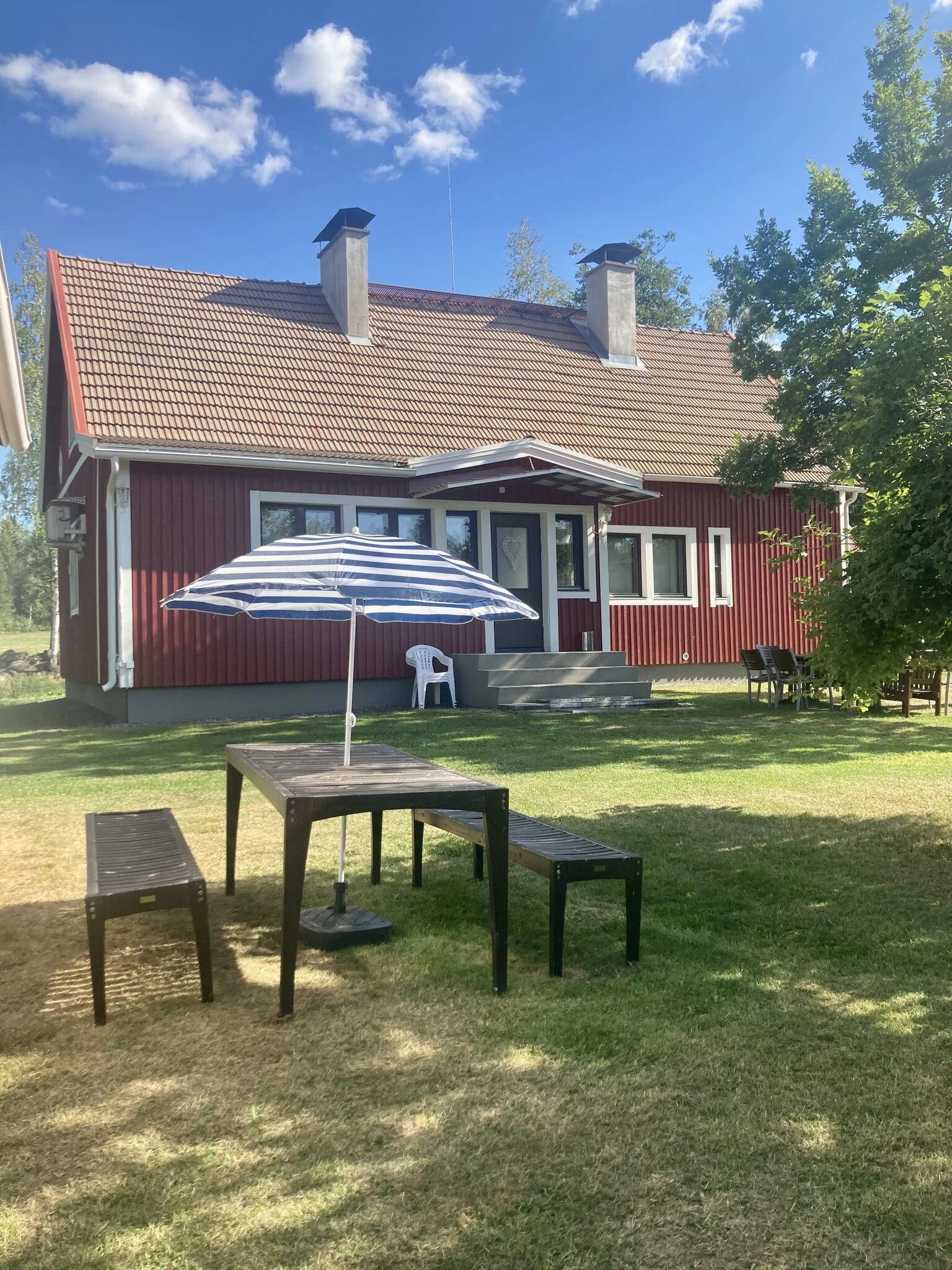Huvilassa on neljä makuuhuonetta ja täysin varusteltu tupakeittiö.